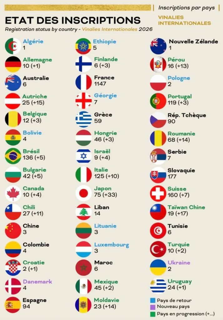Krajiny a počet zaslaných vín do súťaže Vinalies Internationales 2026