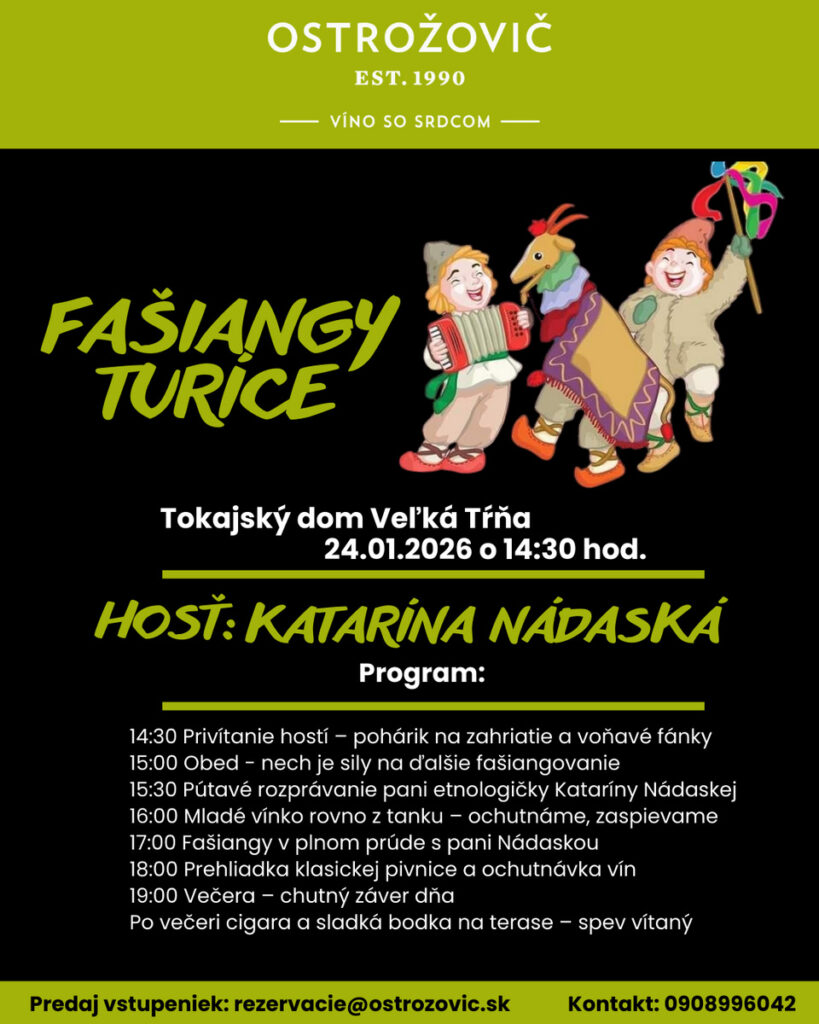 Pozvánka na fašiangový zážitok plný tradícií a chutí. Čaká vás srdečné privítanie s pohárikom, sýty obed, aby nechýbala energia na ďalšiu zábavu a pútavé rozprávanie pani etnologičky Kataríny Nádaskej.