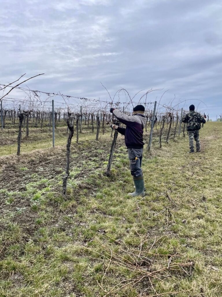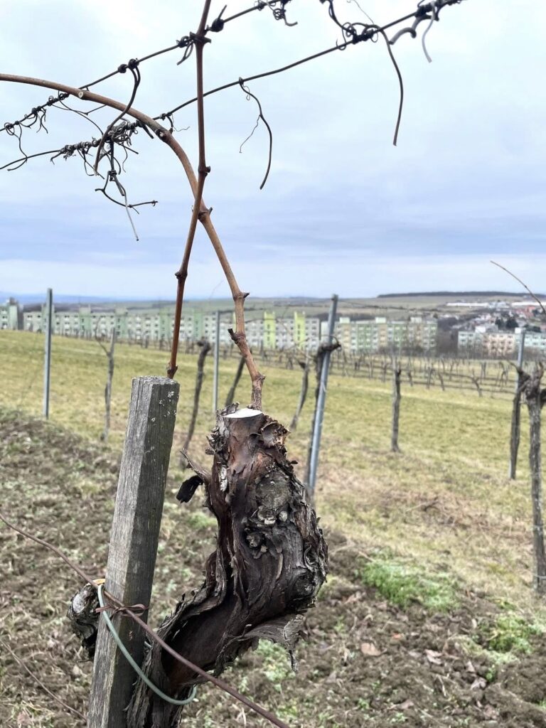 Aktuálne foto z vinohradov NATURAL Domin & Kušický. Rez viniča zohráva zásadnú úlohu pri udržiavaní zdravia rastliny, rovnováhy medzi rastom a rodivosťou a pri zabezpečení jeho dlhodobej vitality.