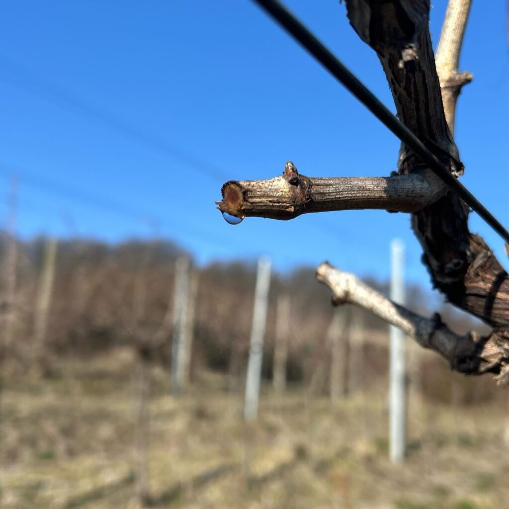 Jar je definitívne tu, vinič ožíva. Ako vidno na fotografii z Limbachu, začína prúdenie miazgy.