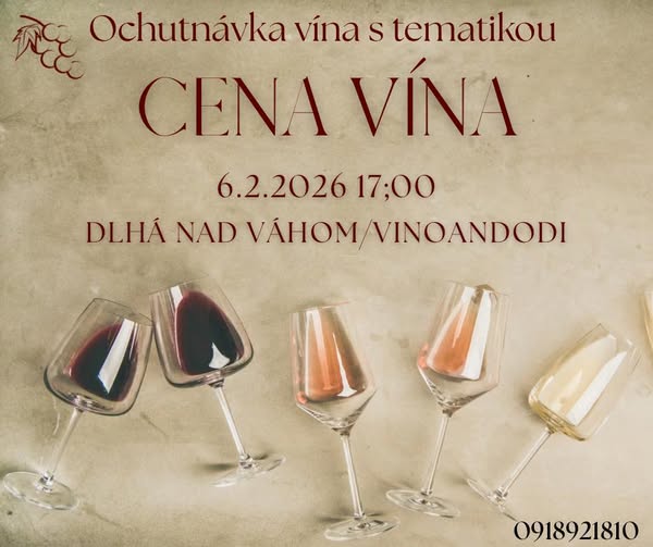 Dovoľujeme si Vás srdečne pozvať na ochutnávku vína s tematikou „Cena vína“, ktorá sa uskutoční 6. februára 2026 o 17:00 v priestoroch Vino Andódi, Dlhá nad Váhom.