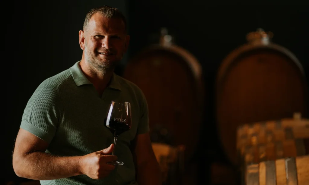 Frtus Winery stojí priamo vo vinohradoch. Ľudia nechcú len kúpiť víno, chcú cítiť miesto, kde sa rodí. Kedysi sme mali pivnicu o dediny ďalej a veľa času sme stratili cestami. Dnes máme vinohrad, pivnicu aj priestor pre hostí na jednom mieste, čo mení prácu aj atmosféru. Pri výstavbe sme nechceli iba technické vinárstvo, preto sme plány prekopali a vytvorili miesto so životom — priestor pre svadby, koncerty, workshopy či tiché večery s pohárom vína. Vzniká tu komunita, ktorá sa vracia, pretože toto miesto má dušu.