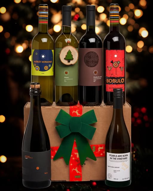 V každom sete okrem vín (sekt Chardonnay 2021, Muškát moravský 2025, polosladká Pálava 2024, Veltlínske zelené 2024, Frankovka modrá 2021, ružová hroznová šťava Bobulo 2024) nájdete aj ručne vyrobenú vianočnú ozdobu od organizácie Drevenô koliesko, ktorá krásne dotvorí slávnostnú náladu pri stromčeku.