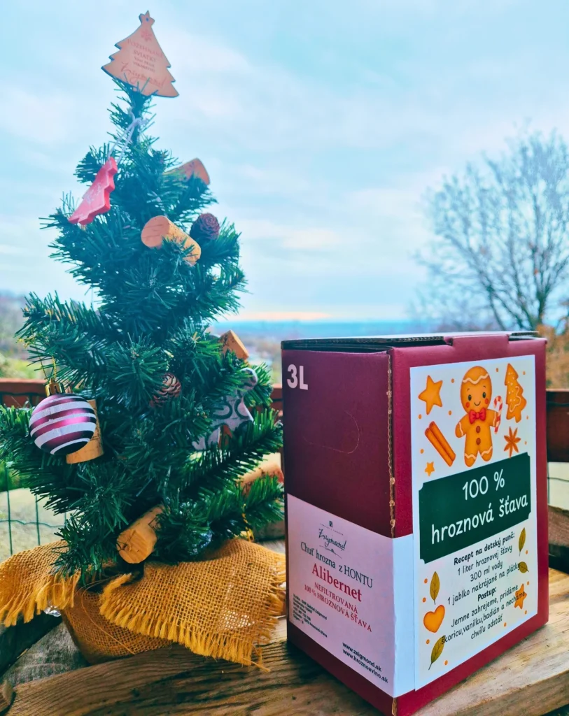 Vianoce vo vôni škorice a hrozna. Hľadáte niečo, čo poteší deti, návštevy aj rodinu? 100 % hroznová šťava Alibernet (3L) z vinárstva Zsigmond je počas decembra bestseller – a nie náhodou.